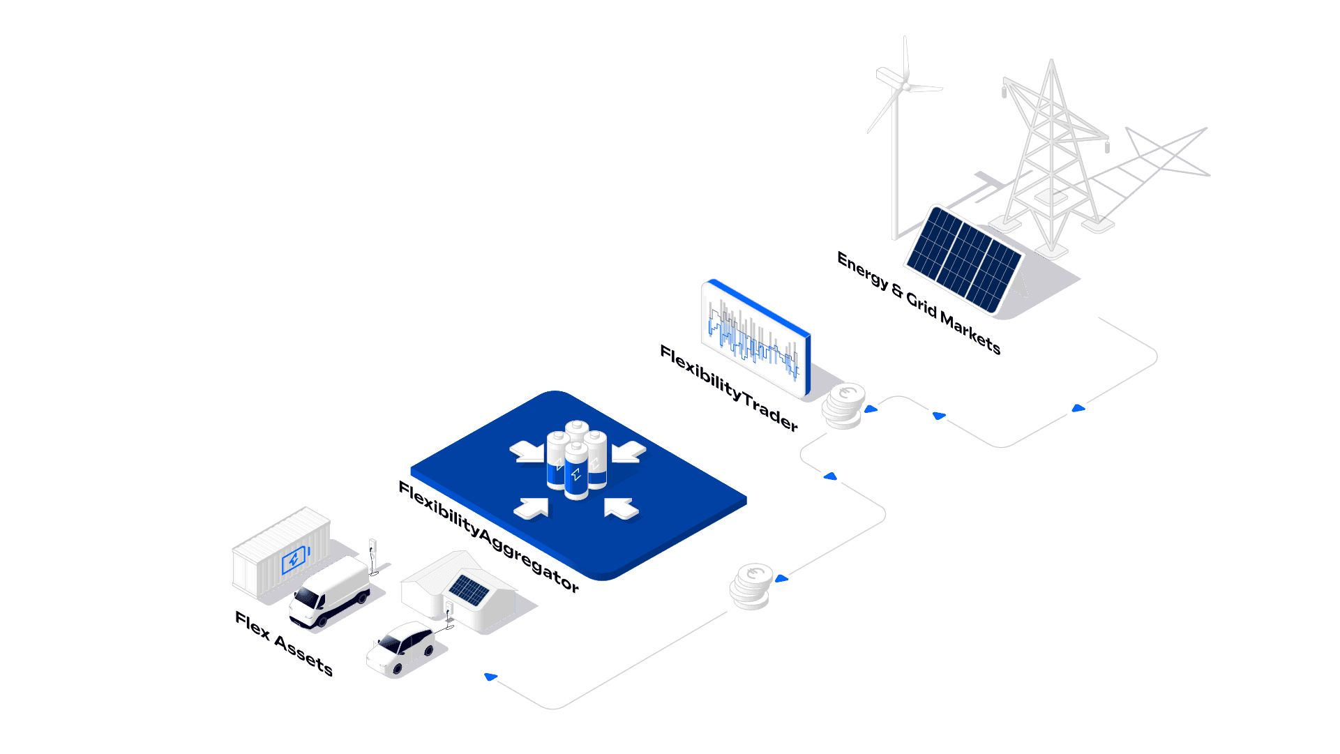 Our FlexibilityAggregator platform bundles flexible assets into a virtual power plant — with dynamic closed-loop aggregation and precise disaggregation.
