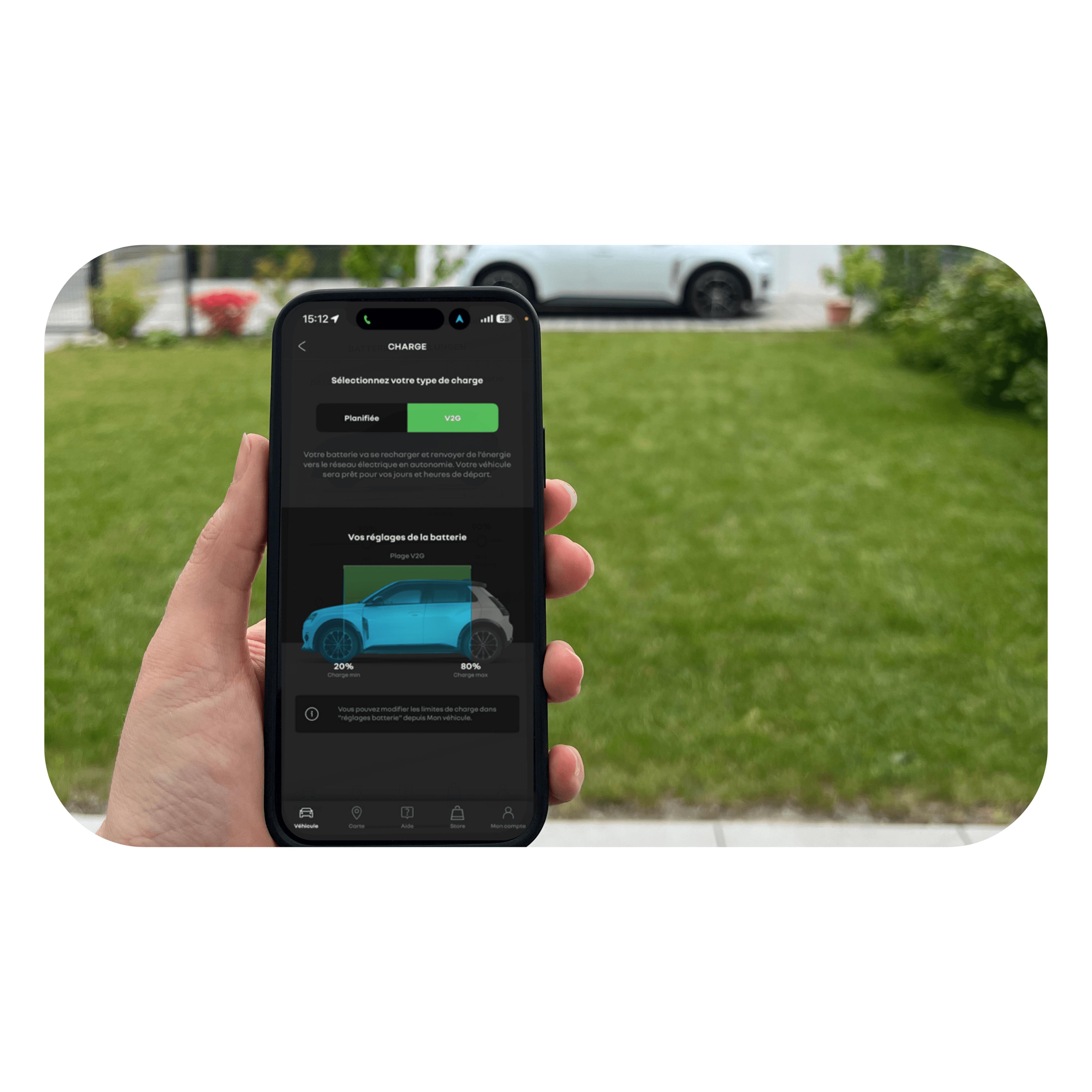Mithilfe der passenden My Renault App können die Fahrer:innen den gewünschten Ladezustand und die Abfahrtszeit eingeben und sich ihre V2G-Ersparnisse anzeigen lassen.